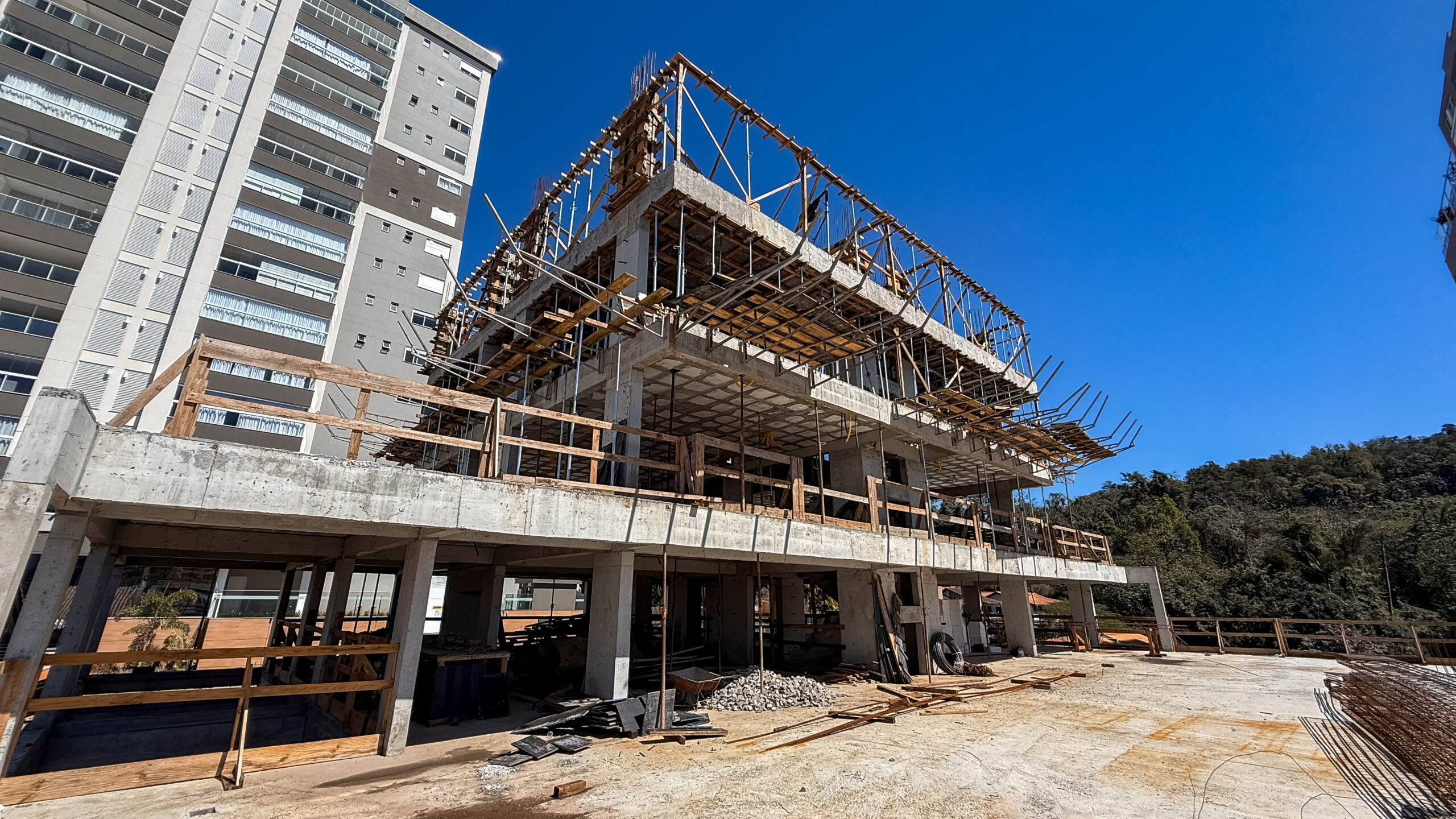 No rooftop, que se destaca por uma vista privilegiada, o projeto traz piscina, salão de festas, academia e ainda um espaço gourmet aberto.